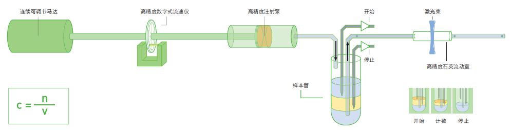 CyFlow® Cube 8采用定體積細(xì)胞絕對(duì)計(jì)數(shù)方法(TVAC)對(duì)所有顆?;蚣?xì)胞的濃度進(jìn)行測(cè)定。這種技術(shù)基于絕對(duì)計(jì)數(shù)來(lái)實(shí)現(xiàn),即:顆粒濃度(C)是給定體積(V)內(nèi)的細(xì)胞數(shù)量(N),C= N/V。給定體積(V)是在已知直徑的的樣品管內(nèi)兩個(gè)電極之間的距離或者控制樣品速度的體積進(jìn)行測(cè)量。