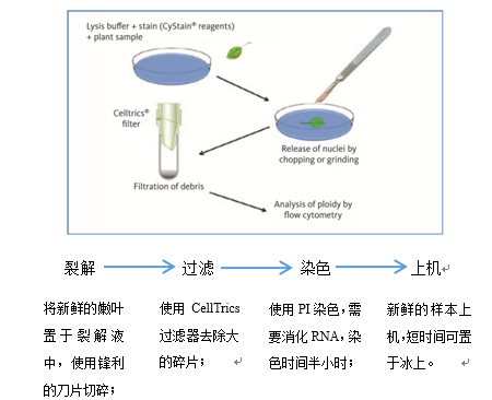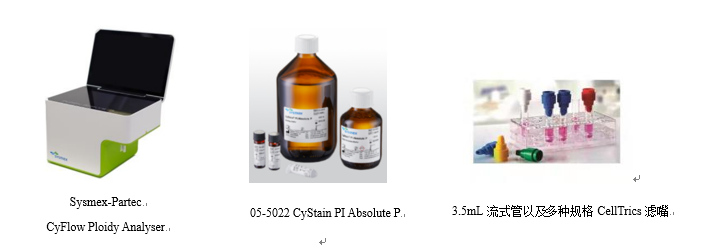 吉源生物采用配置532nm綠色激光的Sysmex-Partec CyFlow Ploidy Analyser,搭配Sysmex CyStain PI基因組大小檢測試劑盒,僅需半小時,即可完成基因組大小預(yù)估。實驗基本步驟如下: